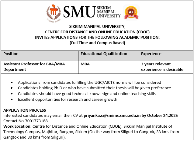 for current vacancies. SMU and its constituent colleges never ask for any payment
